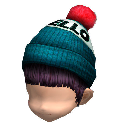 Mũ len xanh,bông đỏ