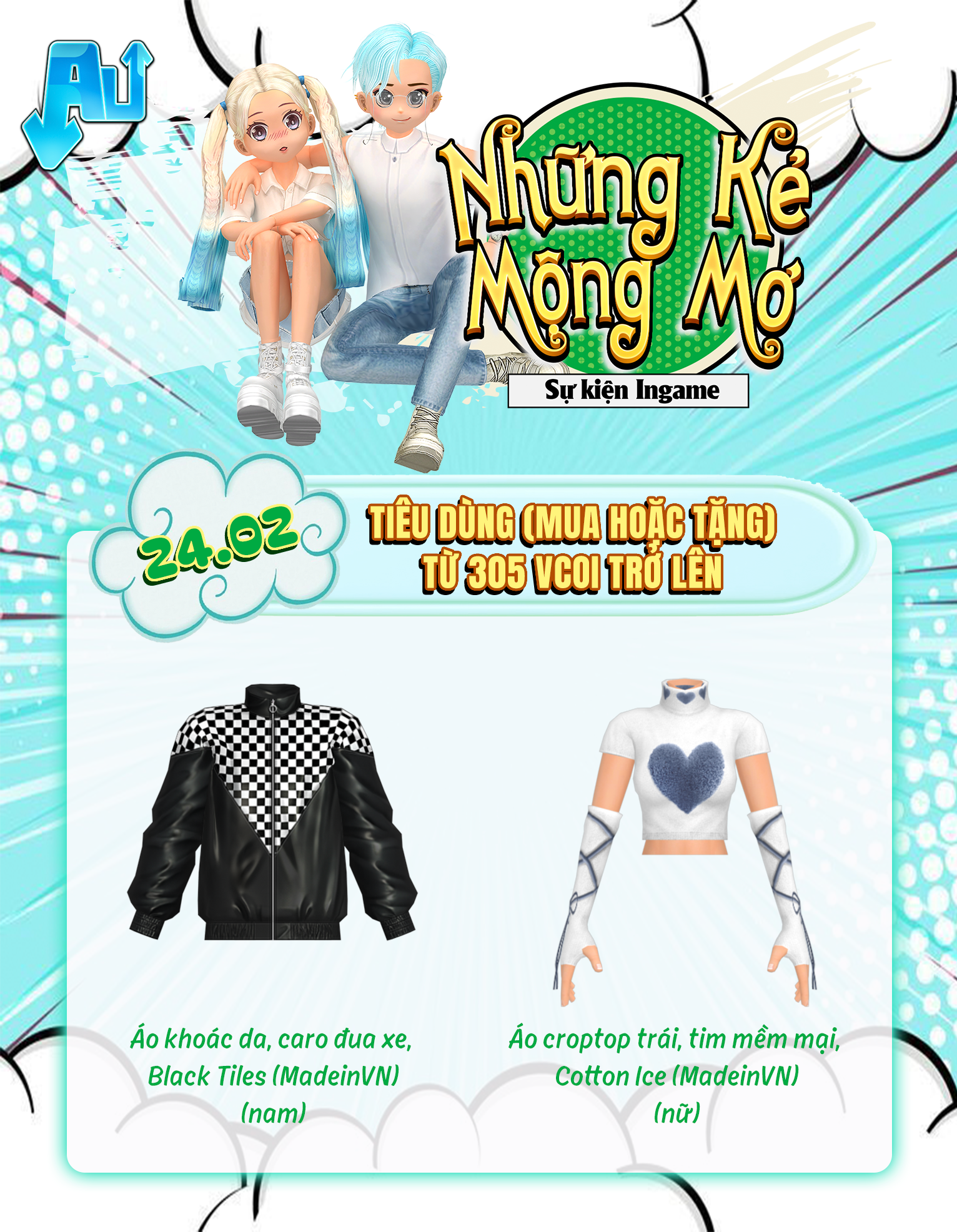 mang đến loạt item mới với phong cách nhẹ nhàng, bay bổng và đầy chất riêng ✨ Những outfit thanh thoát, gam màu dịu mắt sẽ xuất hiện trong sự kiện lần này, sẵn sàng giúp bạn hóa thân thành một “dreamer” thực thụ trên sàn nhảy. Cùng khám phá và chọn ngay cho mình set đồ thật phù hợp nhé 💫