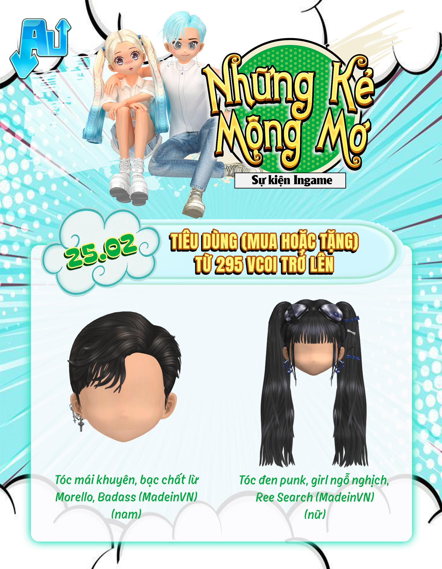 Nội dung: Tất cả tài khoản tham gia giao dịch Vcoin (mua hoặc tặng) trong game (bao gồm Siêu thị thời trang + Couple Shop + Baby Shop + Vườn + Thông báo Chung bằng Vcoin) trong thời gian sự kiện theo các mốc Vcoin sau: