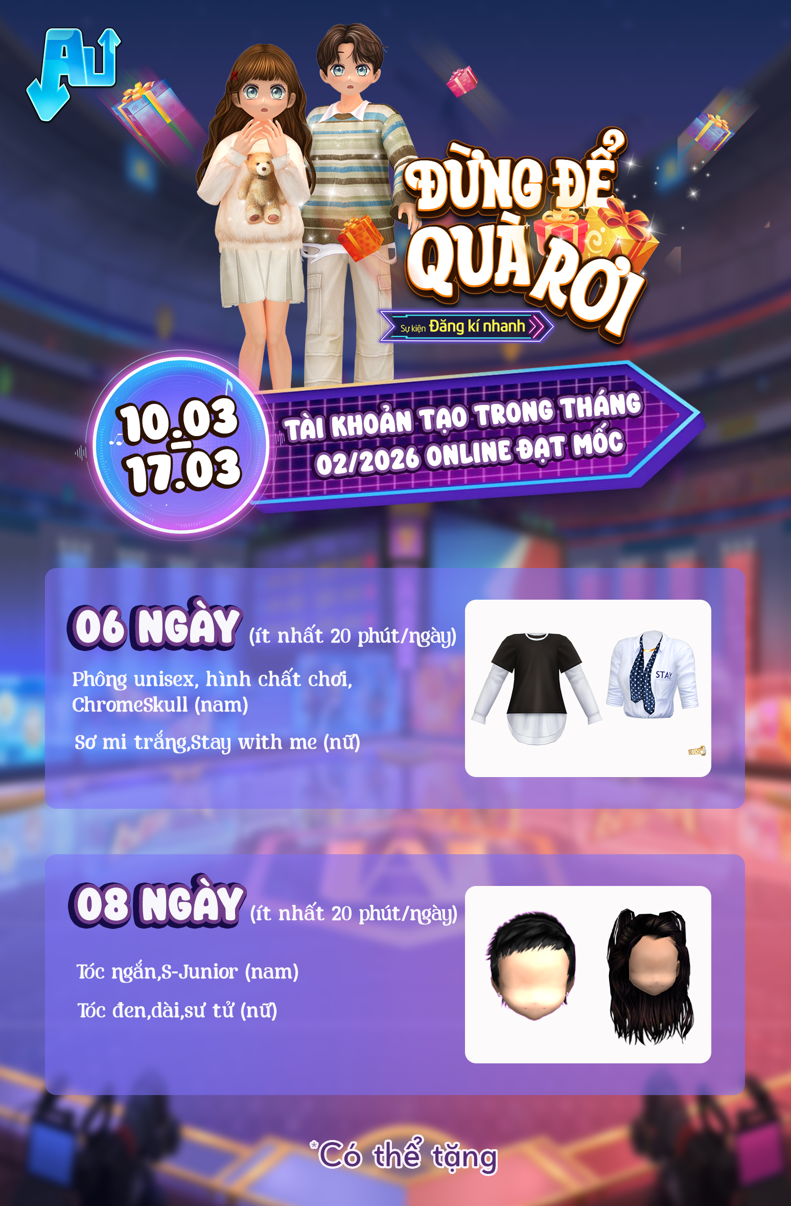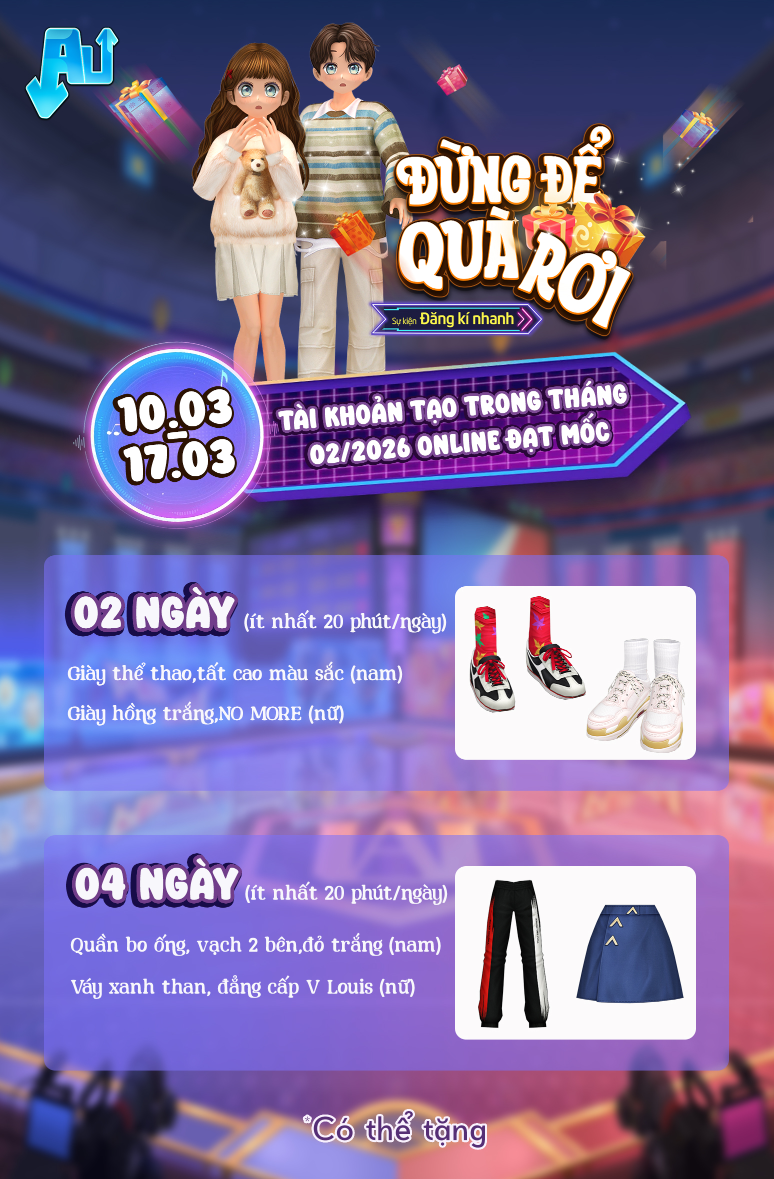 - Tài khoản được tặng phải đăng nhập vào website https://au.vtc.vn/dangkynhanh để nhận quà