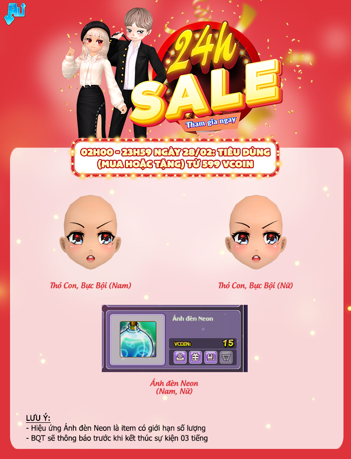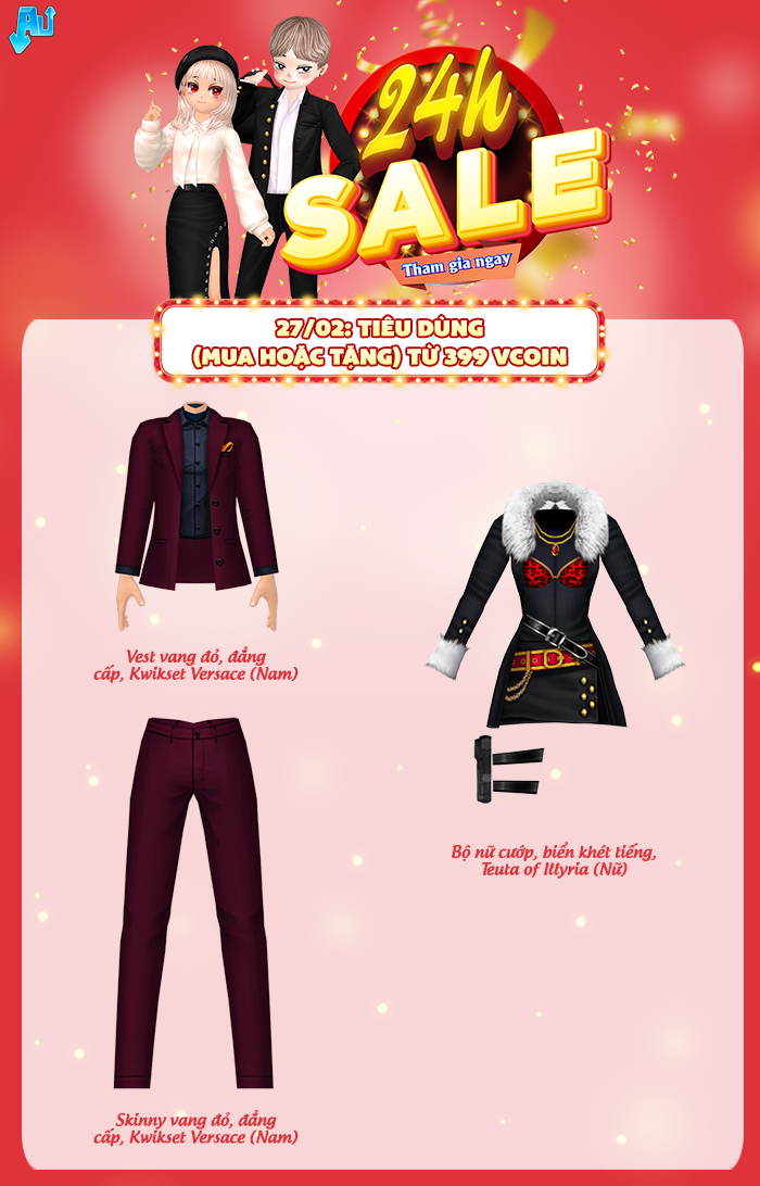 - 02h00 đến 23h59 ngày 28/02: Tiêu dùng (mua hoặc tặng) từ 599 Vcoin trở lên