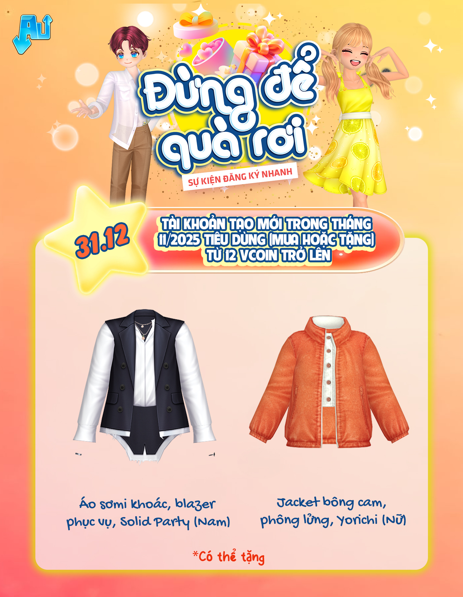 Tài khoản tạo mới trong tháng 11/2025 , tiêu dùng (mua hoặc tặng quà) từ 12 vcoin trở lên