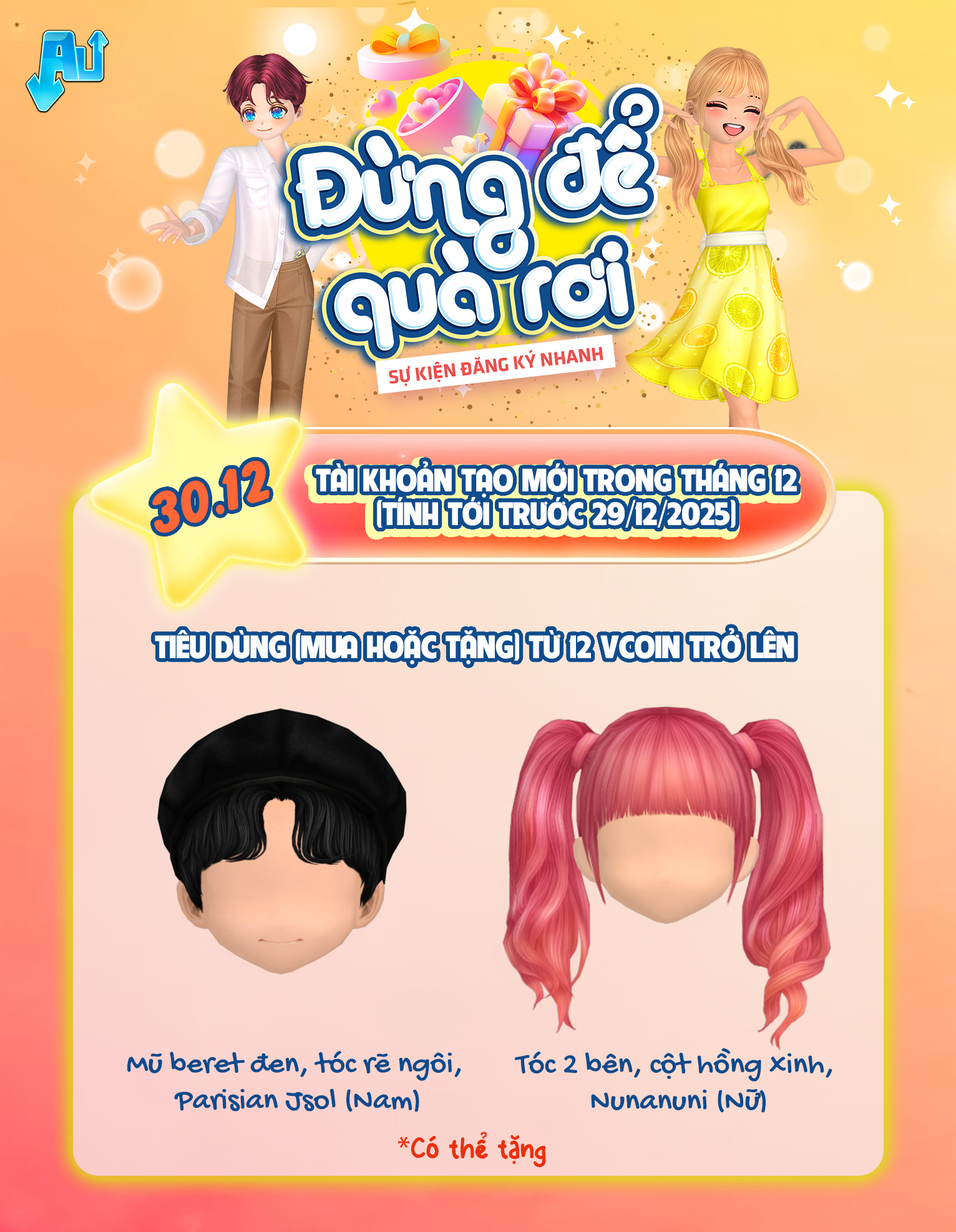 Tài khoản tạo mới trong tháng 12/2025 tính tới trước 29/12/2025 (thời gian tạo từ 01/12-28/12/2025), tiêu dùng (mua hoặc tặng quà) từ 12 vcoin trở lên