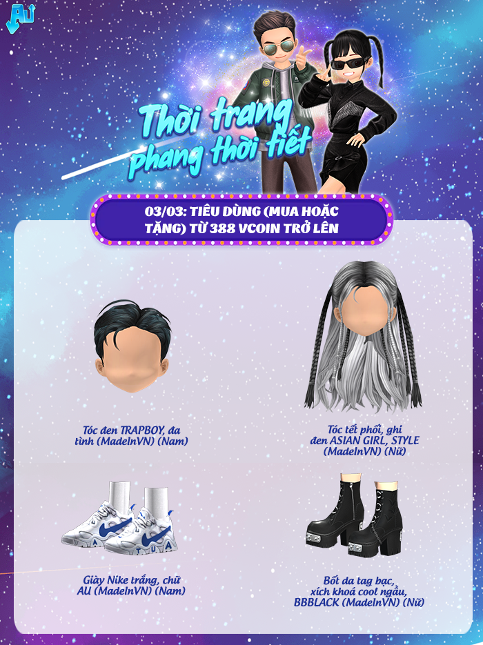 - Ngày 03/03: Tiêu dùng (mua hoặc tặng) từ 388 Vcoin trở lên