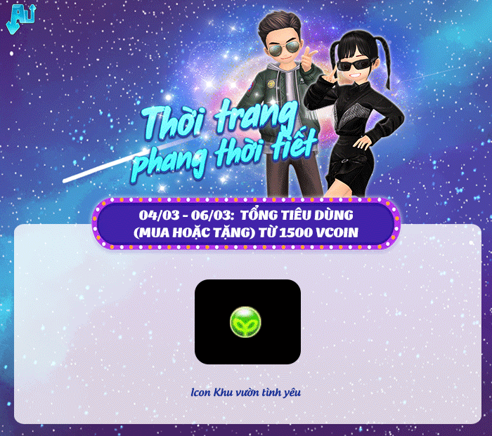 - Từ ngày 04/03 đến ngày 06/03: Tổng tiêu dùng (mua hoặc tặng) từ 1500 Vcoin trở lên