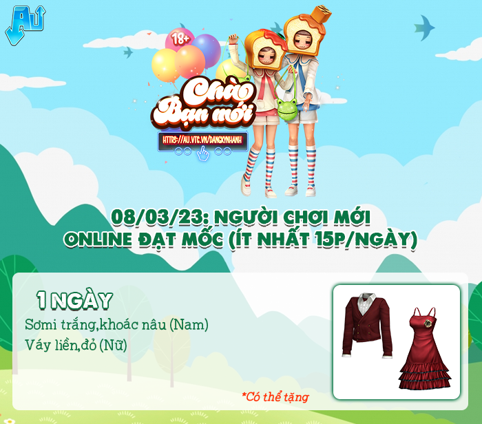 Hoạt động: Tài khoản tạo mới trong ngày 08/03/2023, trong thời gian sự kiện có đăng nhập game Audition và hoàn thành các nhiệm vụ: