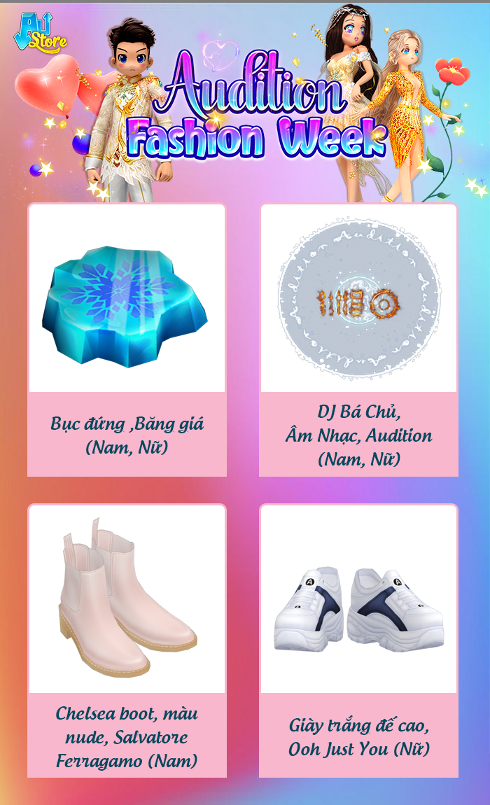 - Trong thời gian sự kiện, mỗi ngày trên AuStore sẽ xuất hiện loạt item khác nhau.