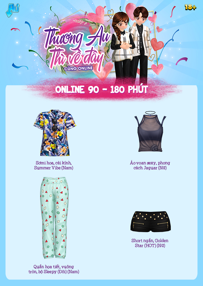 Quà tặng sẽ được trao sau khi kết thúc sự kiện. Nhận quà tại website sự kiện Au: http://au.vtc.vn/sukienau