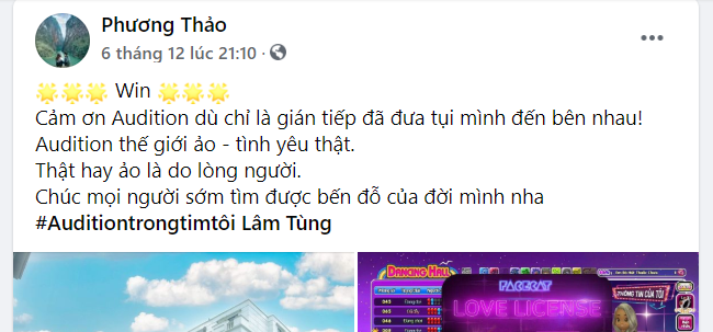 "Thế giới ảo làm gì có tình yêu thật?" - đó hẳn là một câu nói quen thuộc, thường dùng để nhắc nhở nhau đừng quá tin vào tình yêu qua game, qua mạng xã hội. Thế nhưng một cặp đôi Audition đã minh chứng điều ngược lại. Họ tìm được nhau và ở bên nhau nhờ Au và khẳng định: "Thật hay ảo là do lòng người"