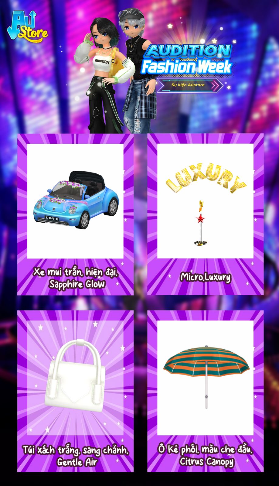 - Trong thời gian sự kiện, mỗi ngày trên Austore sẽ xuất hiện loạt item khác nhau
