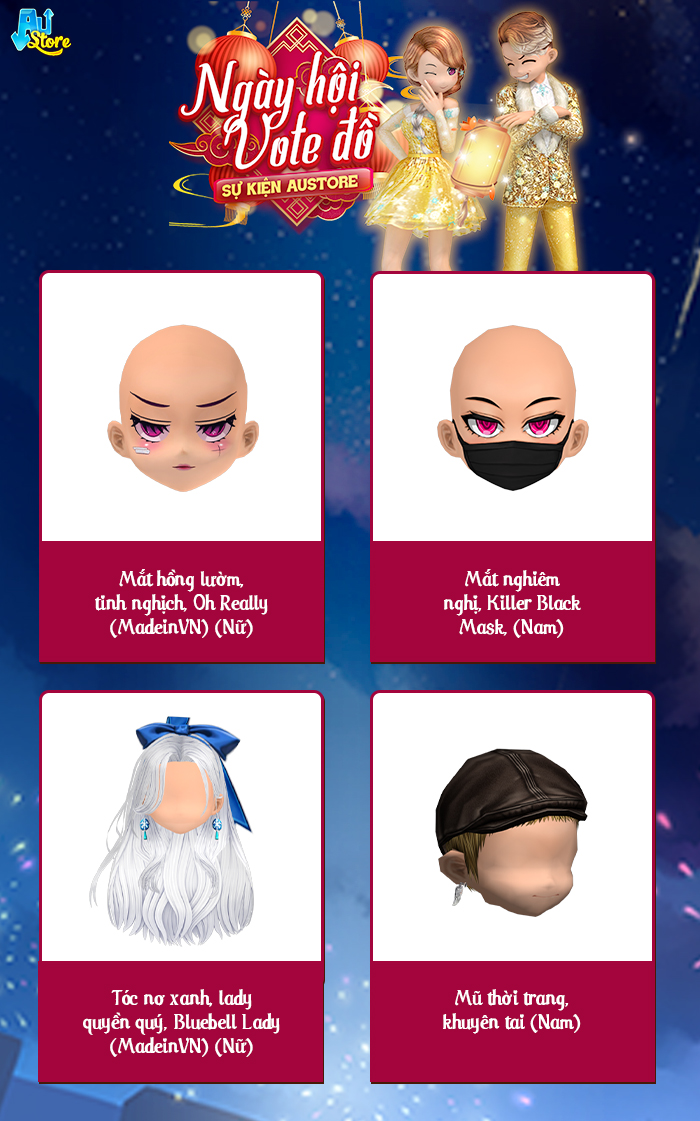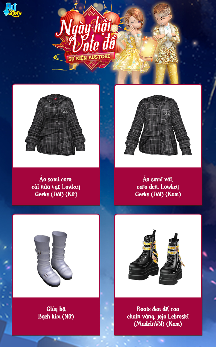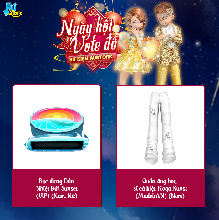 Nội dung: Sự kiện mở bán đồ cho người chơi bình chọn, 10 item được chọn từ list vote sẽ được mở bán trên AUSTORE