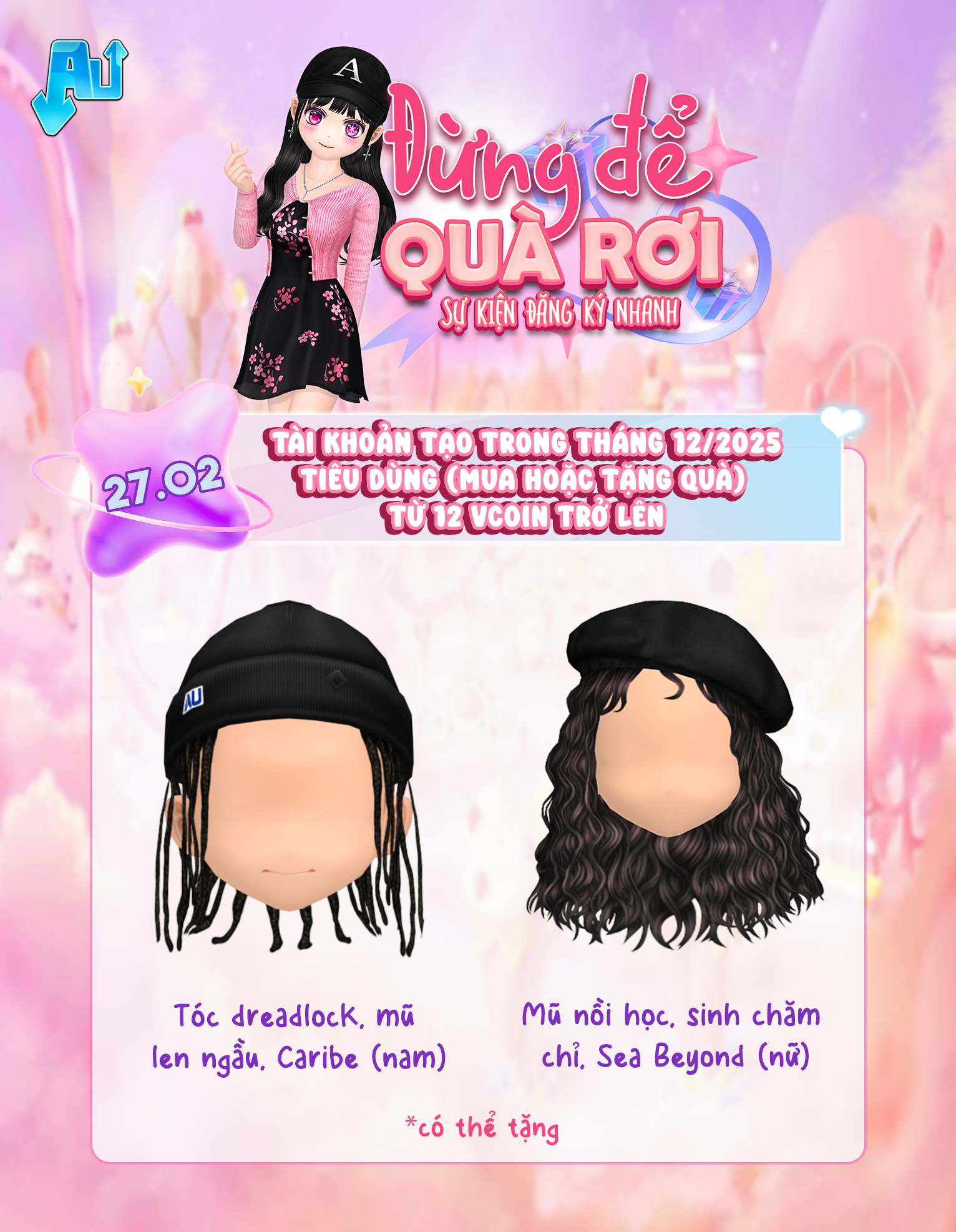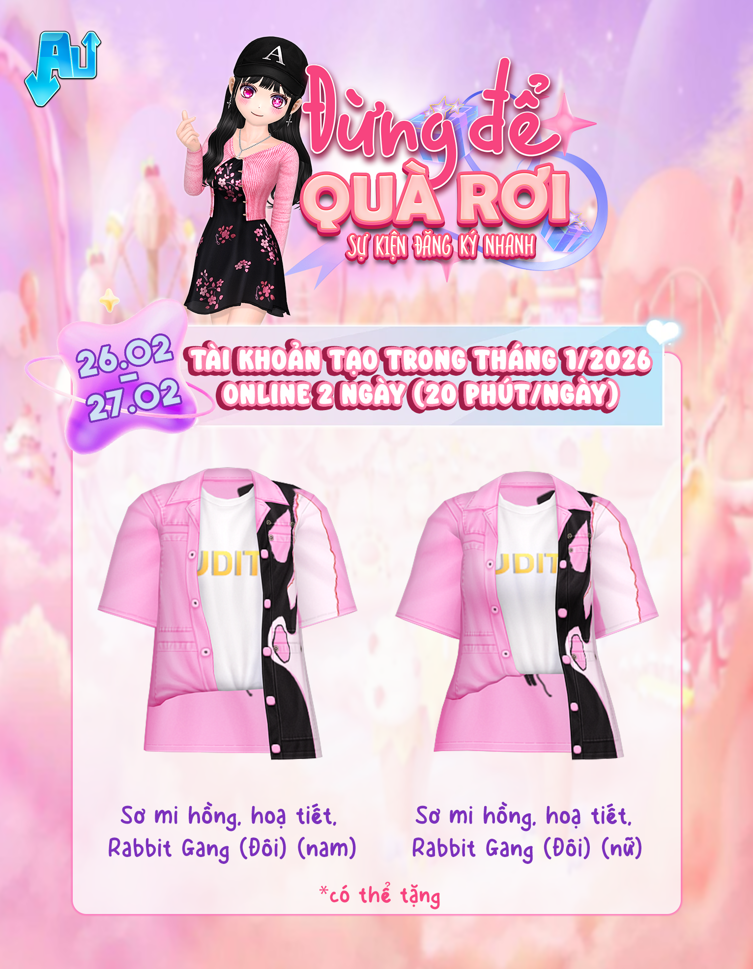- Tài khoản được tặng phải đăng nhập vào website https://au.vtc.vn/dangkynhanh để nhận quà