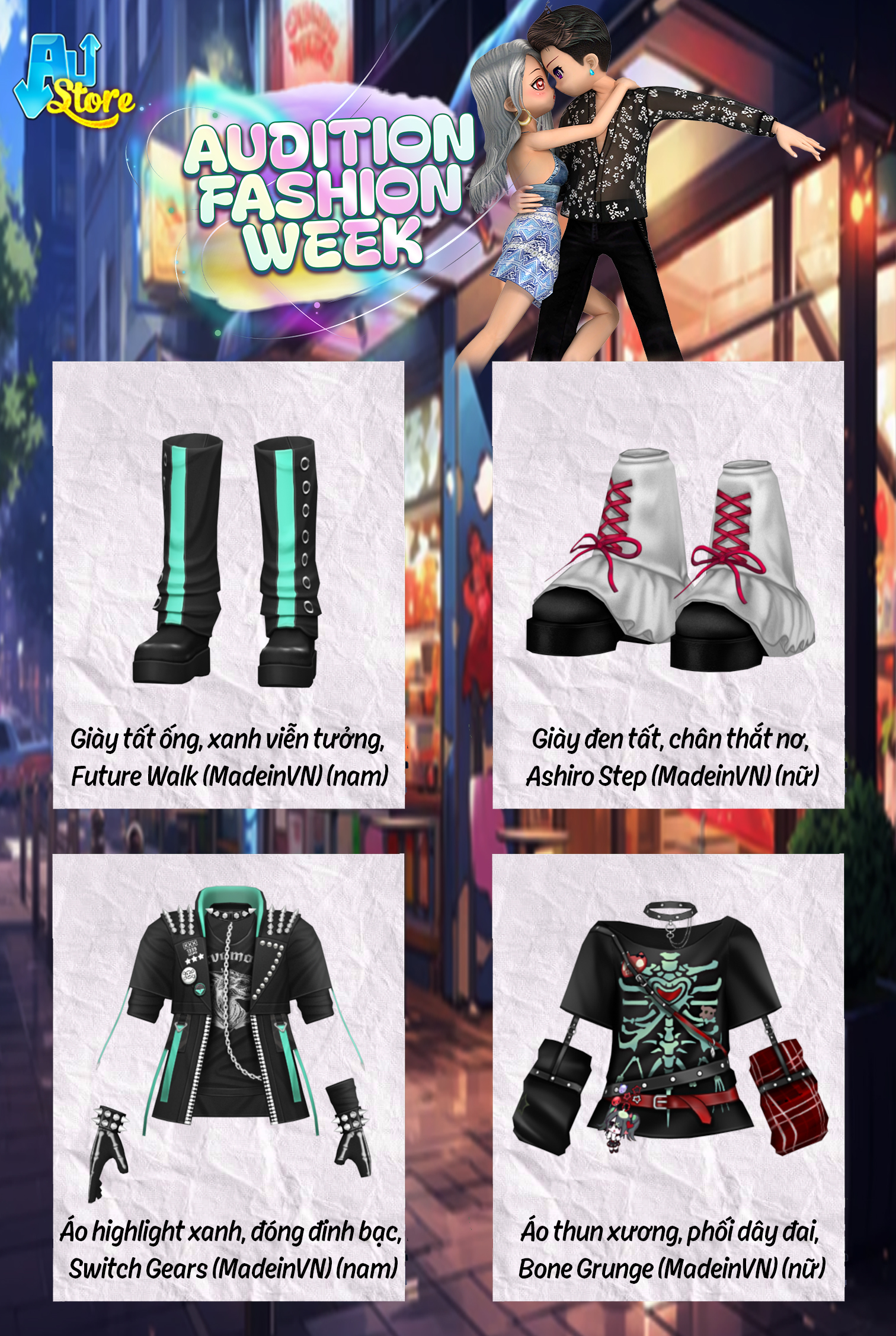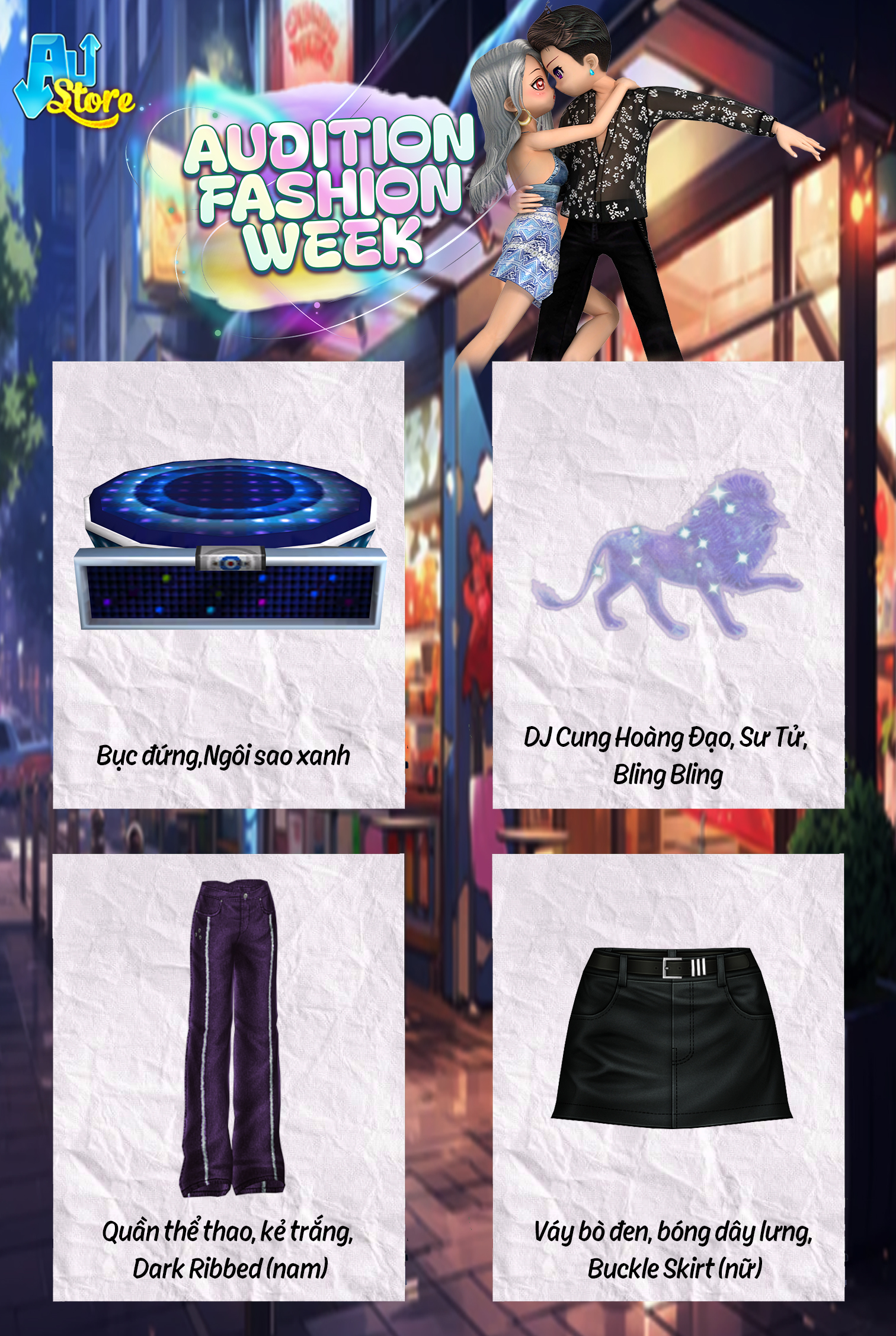 - Trong thời gian sự kiện, mỗi ngày trên Austore sẽ xuất hiện loạt item khác nhau
