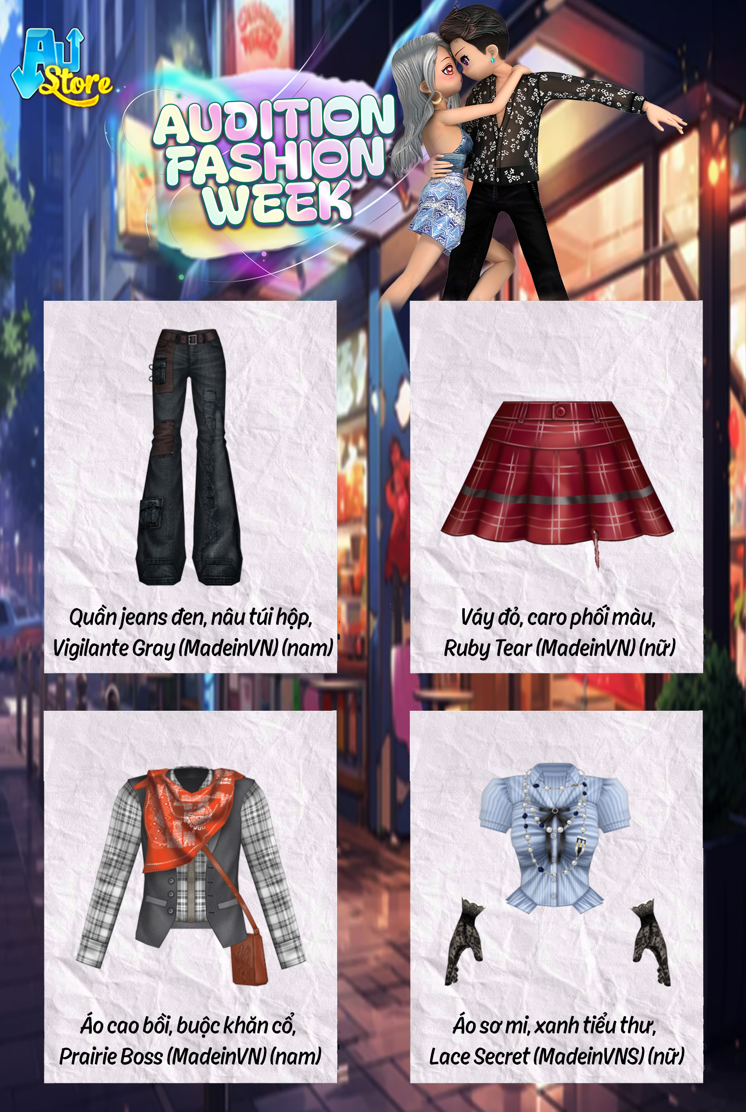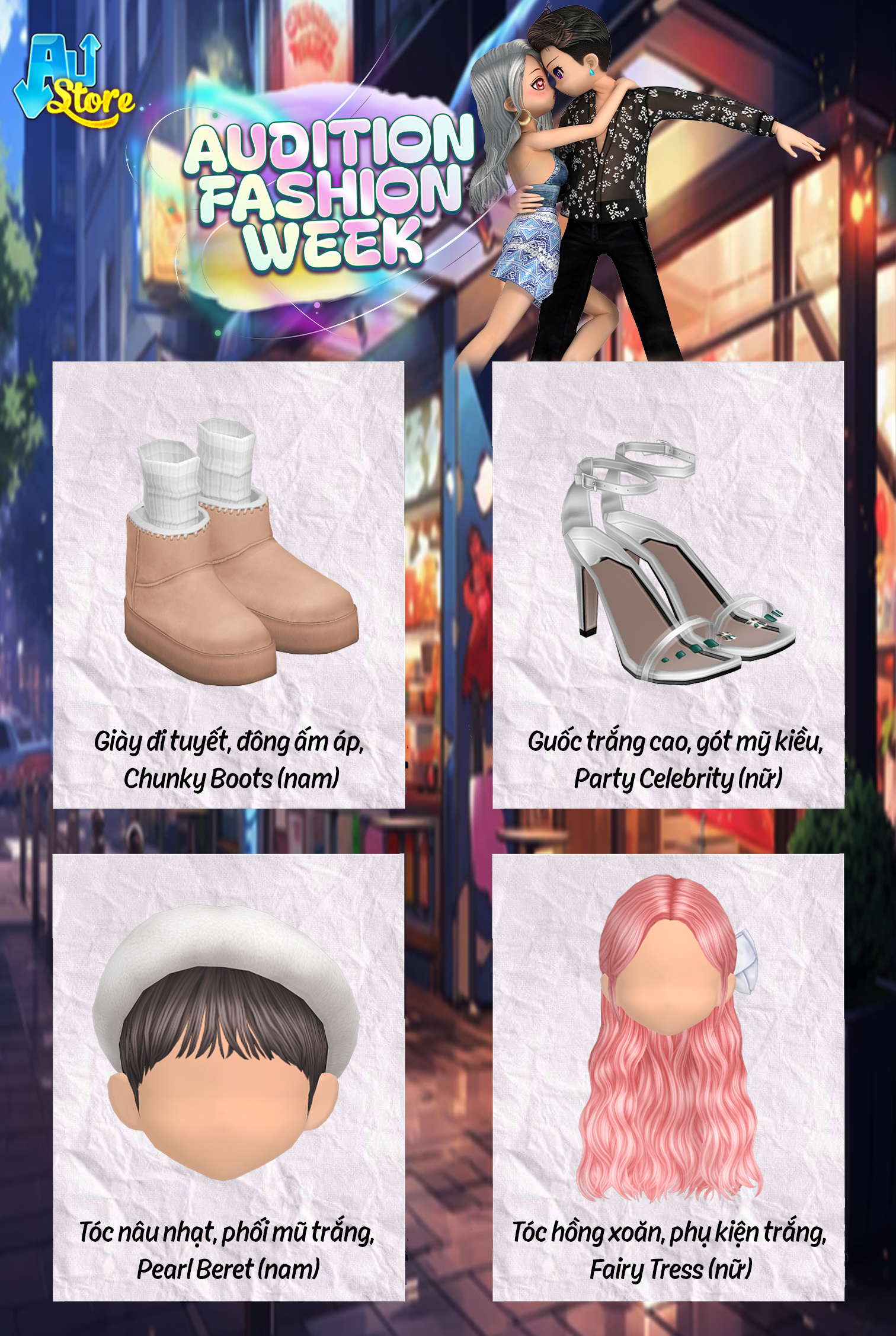 - Trong thời gian sự kiện, mỗi ngày trên Austore sẽ xuất hiện loạt item khác nhau