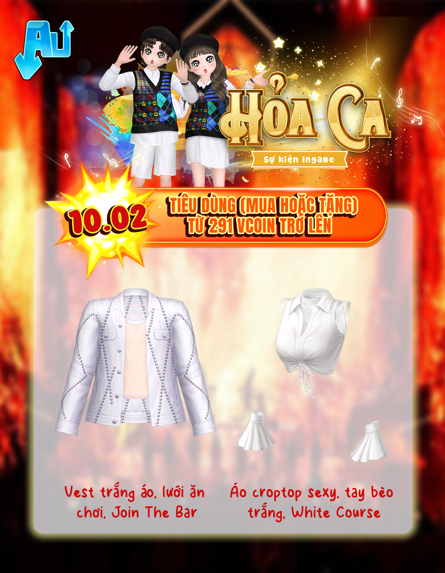 chính thức bùng nổ, thắp lửa Thành Phố Vũ Hội bằng những giai điệu rực cháy và vũ đạo cuồng nhiệt! 🔥 Không còn những rung động dịu dàng, HOẢ CA mang đến làn sóng năng lượng mạnh mẽ, nơi từng nhịp nhạc bốc cháy và từng bước nhảy đều thể hiện cá tính bùng nổ của các vũ công. Tham gia sự kiện, hoàn thành chuỗi nhiệm vụ đặc biệt để rinh về loạt item mang phong cách nóng bỏng – cá tính – đậm chất chiến binh sân khấu. Khám phá ngay thôi!