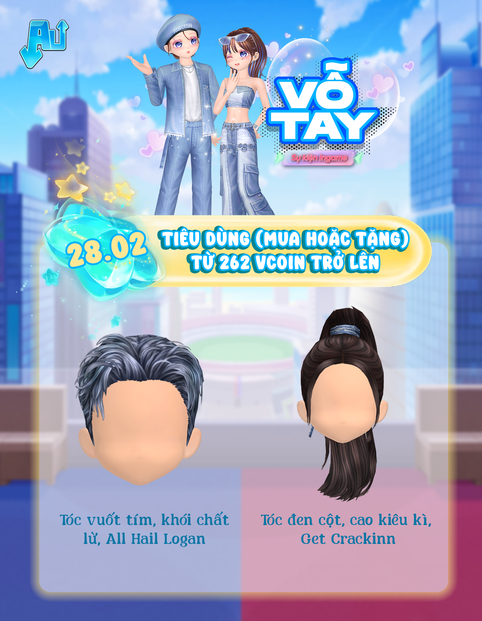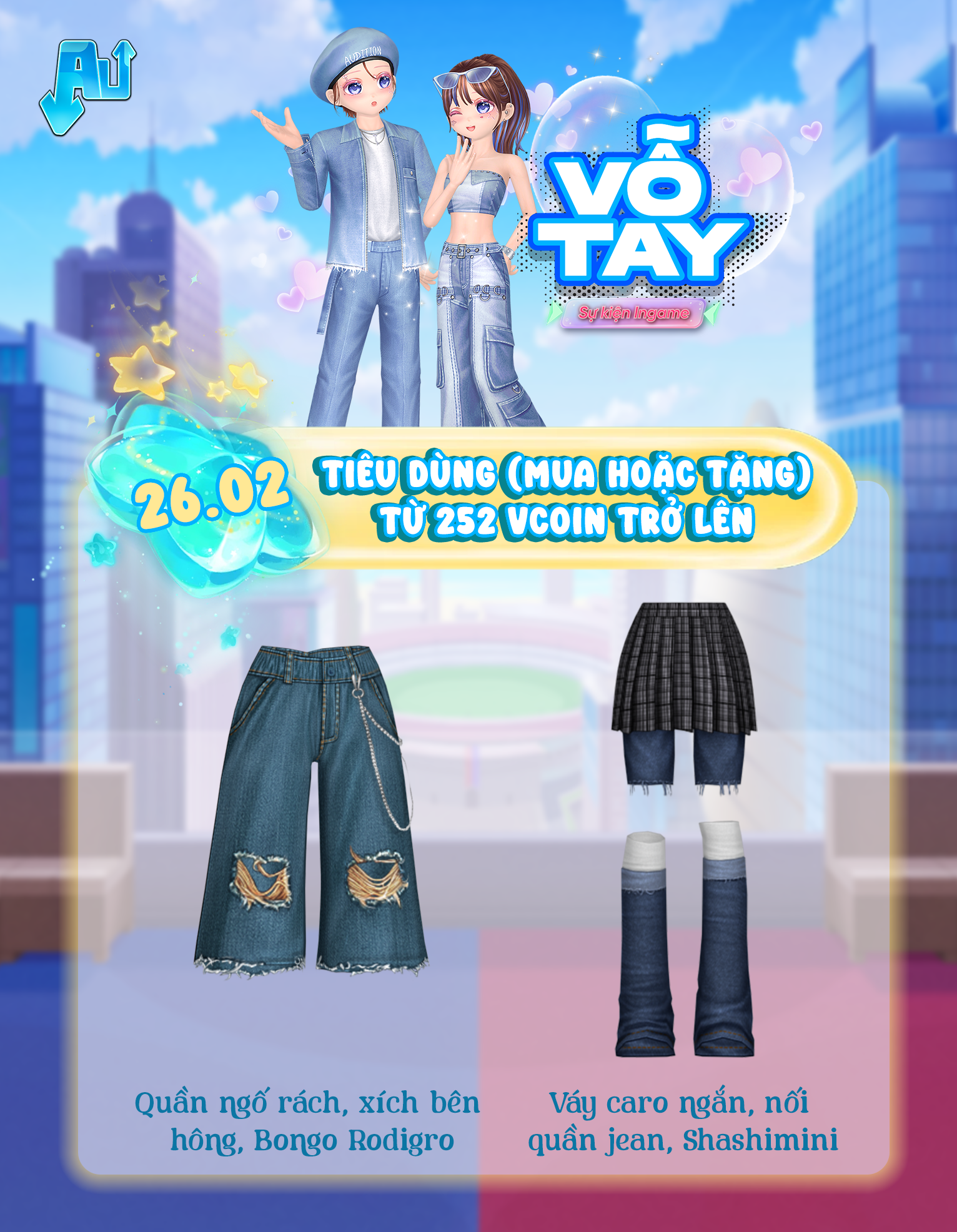 Nội dung: Tất cả tài khoản tham gia giao dịch Vcoin (mua hoặc tặng) trong game (bao gồm Siêu thị thời trang + Couple Shop + Baby Shop + Vườn + Thông báo Chung bằng Vcoin) trong thời gian sự kiện theo các mốc Vcoin sau:
