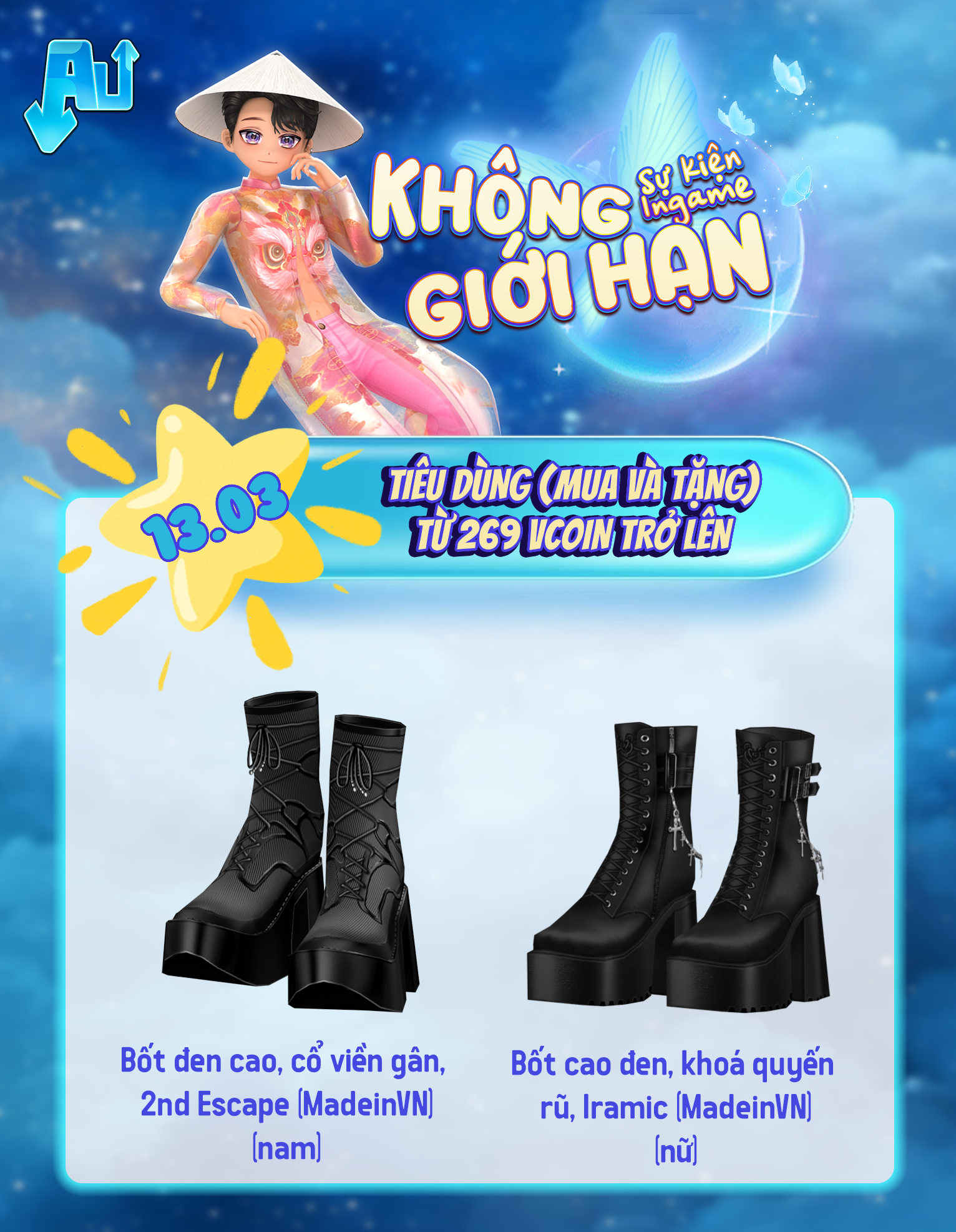 - Các item trong sự kiện đều có thời hạn vĩnh viễn (không tính item bục đứng)