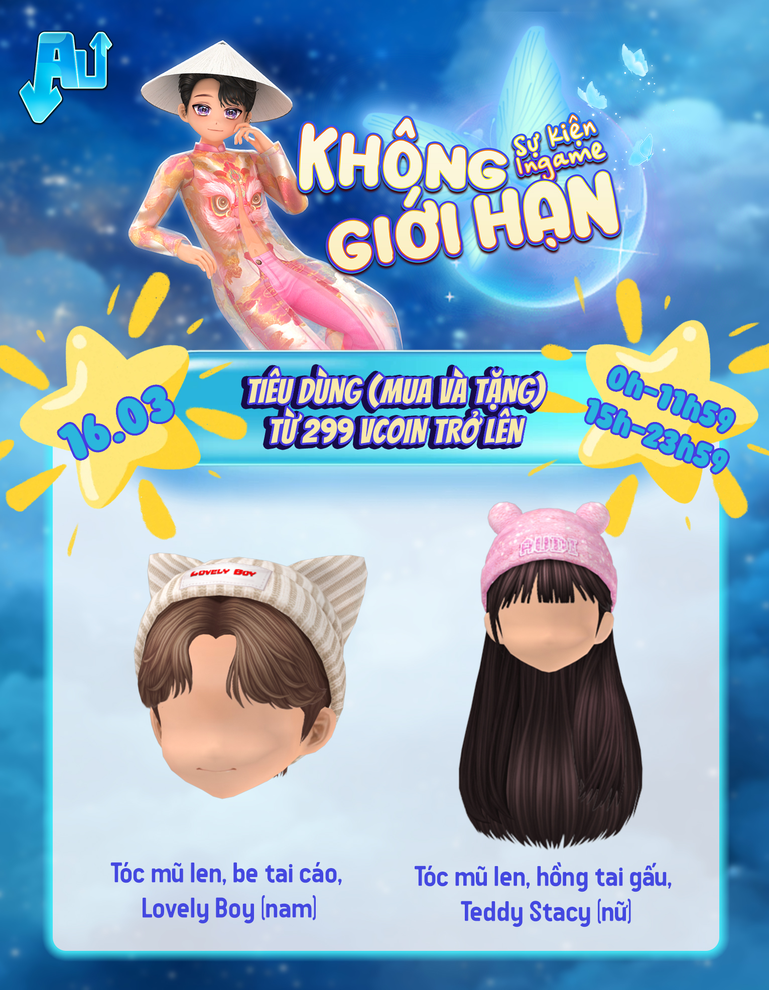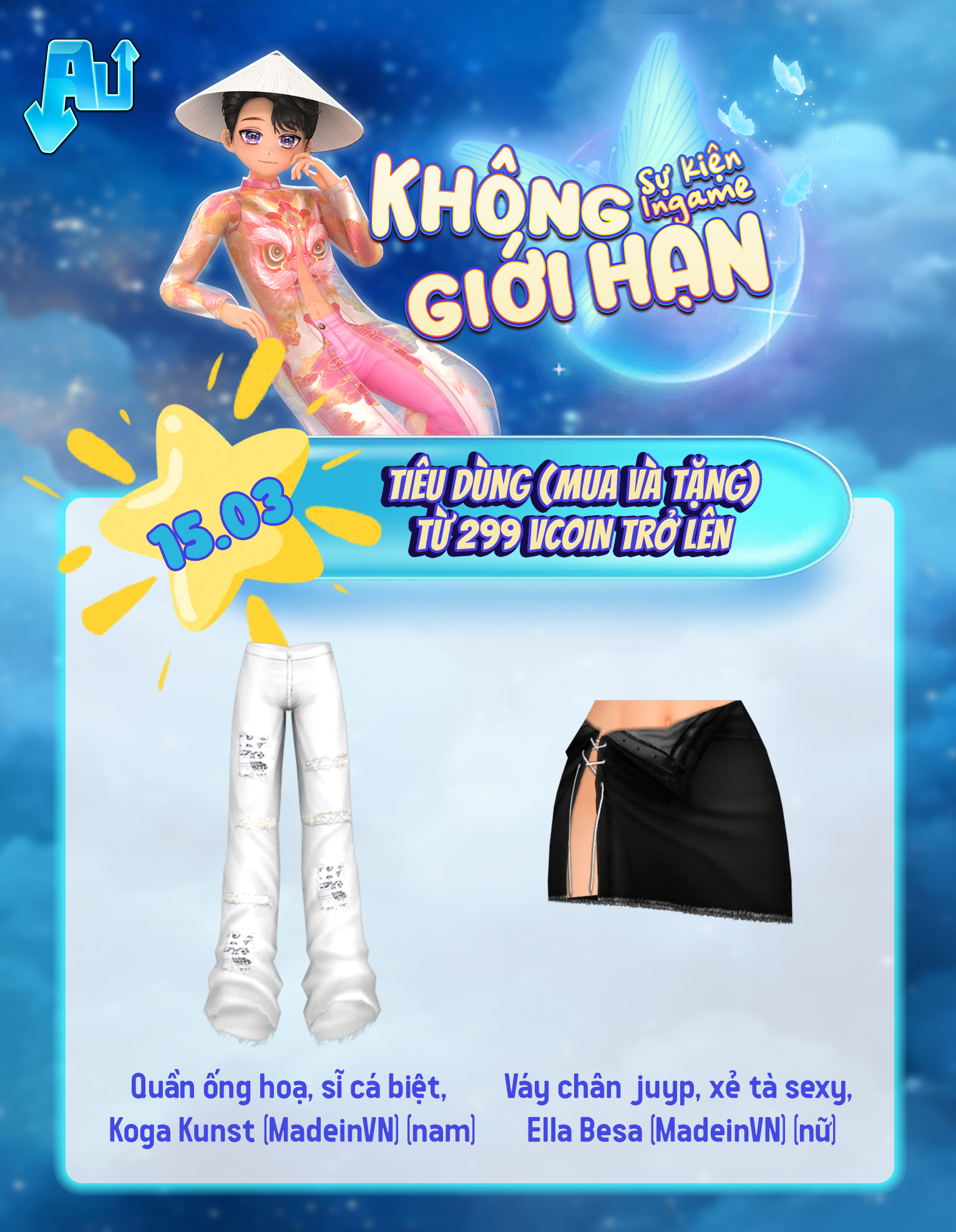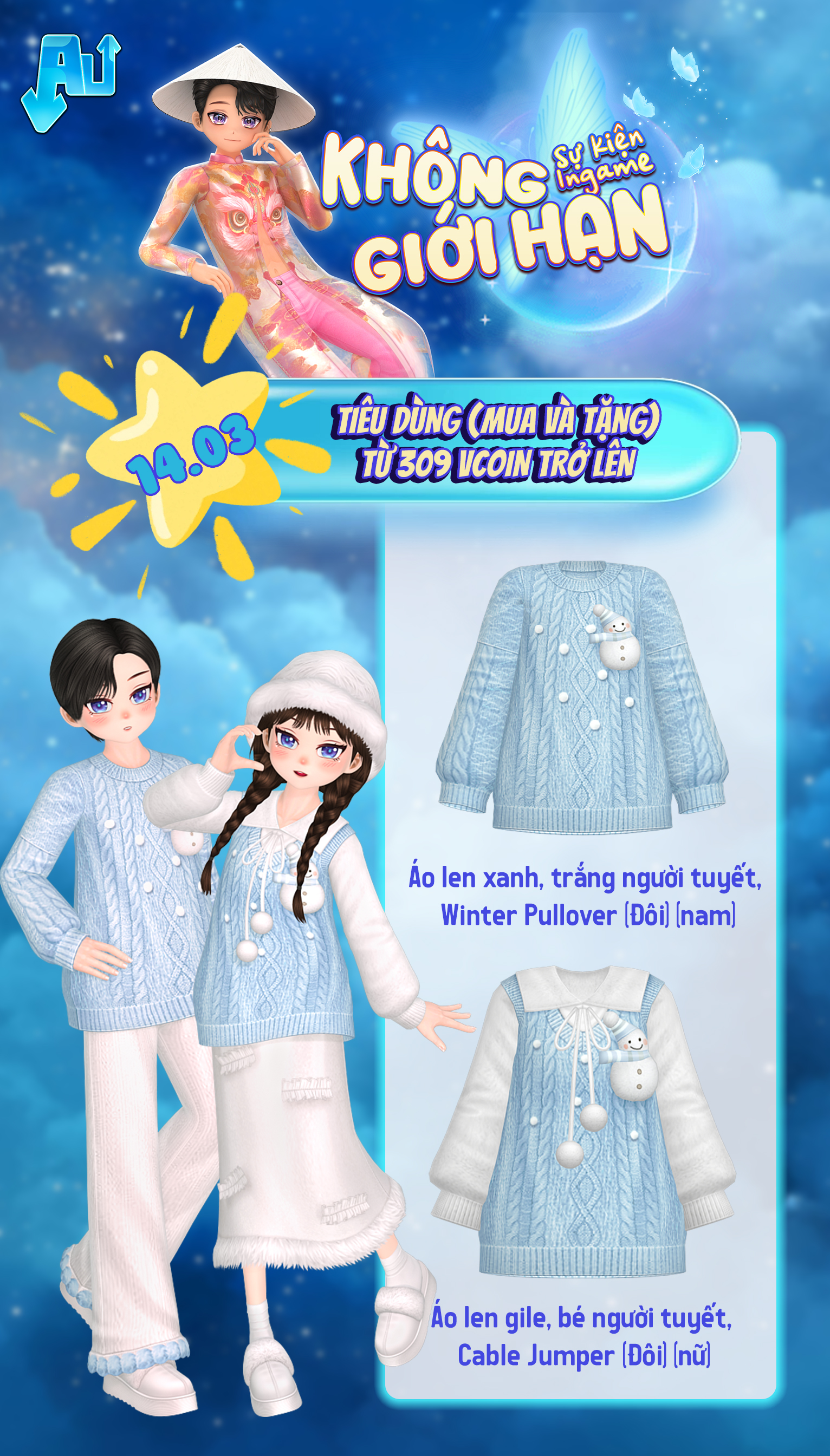 Nội dung: Tất cả tài khoản tham gia giao dịch Vcoin (mua hoặc tặng) trong game (bao gồm Siêu thị thời trang + Couple Shop + Baby Shop + Vườn + Thông báo Chung bằng Vcoin) trong thời gian sự kiện theo các mốc Vcoin sau: