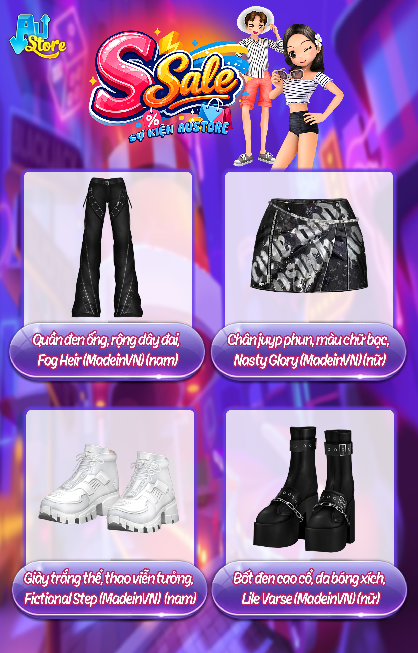 Cùng chào đón S SALE tháng 4 với loạt ưu đãi siêu hời dành cho cư dân Thành Phố Vũ Hội! 🌸✨ Những item thời trang hot hit, outfit cá tính cùng phụ kiện cực xinh đã sẵn sàng lên kệ với mức giá cực “mềm”. Lên đồ thật chất, ghé AUSTORE săn sale và tỏa sáng rực rỡ trên mọi sàn nhảy ngay thôi! ✨🎁