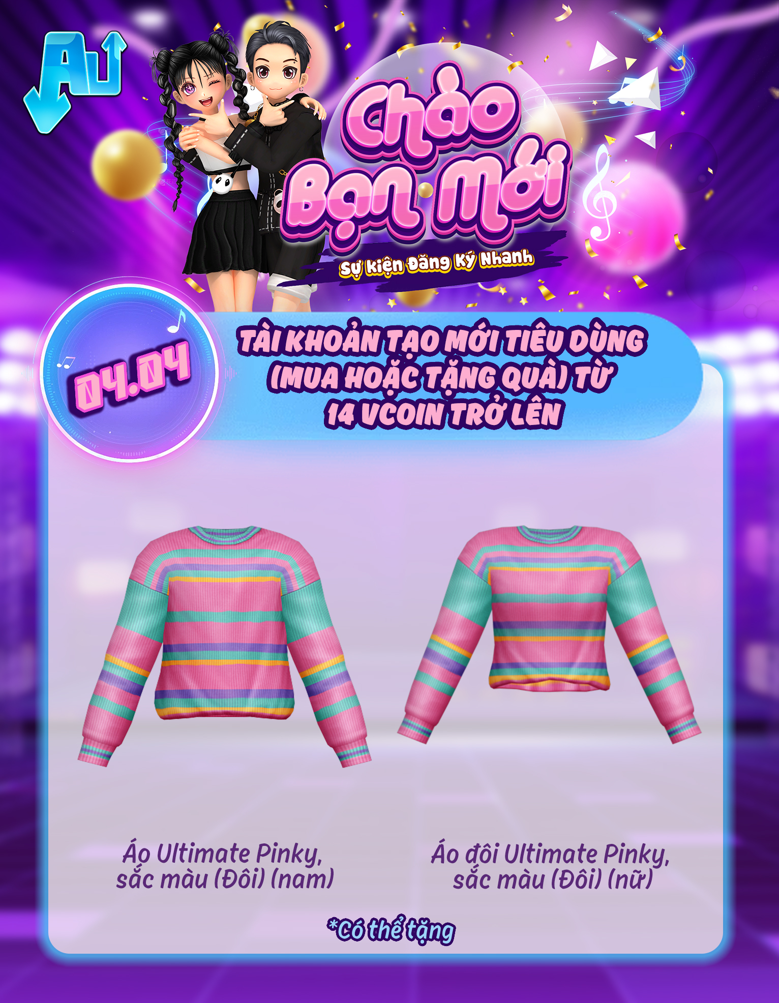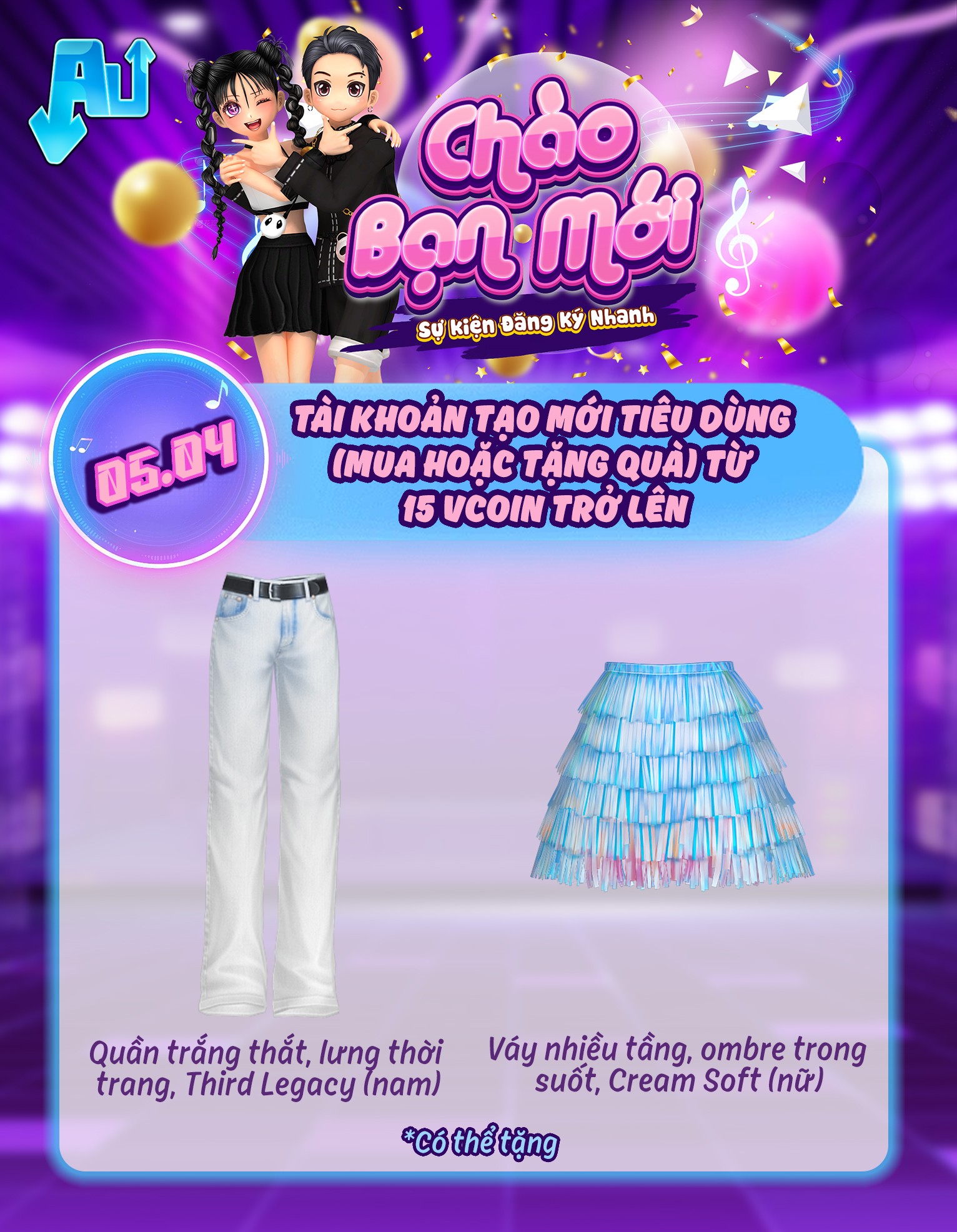 Trong ngày 04/04/2026, tài khoản tạo mới tiêu dùng (mua hoặc tặng quà) từ 14 vcoin trở lên
