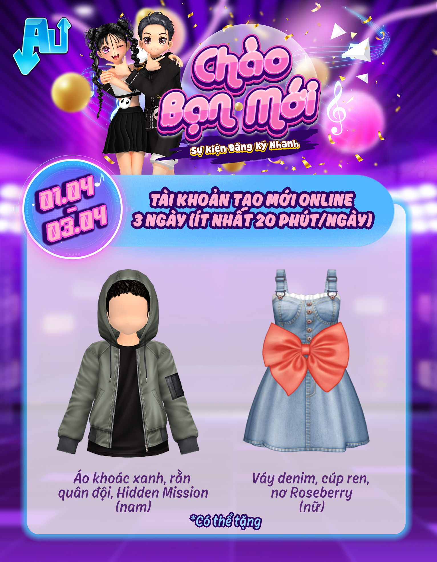 Trong ngày 01/04/2026 đến 03/04/2026, tài khoản tạo mới và online 3 ngày (ít nhất 20 phút/ngày)