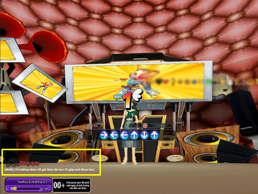 Quay video sẽ quay lại mọi âm thanh và thao tác tại lúc đấy của cửa sổ Audition (thanh nút, phần nhạc, chat, chữ “Đang ghi”, mở mục Options, mở mục Emo,..)