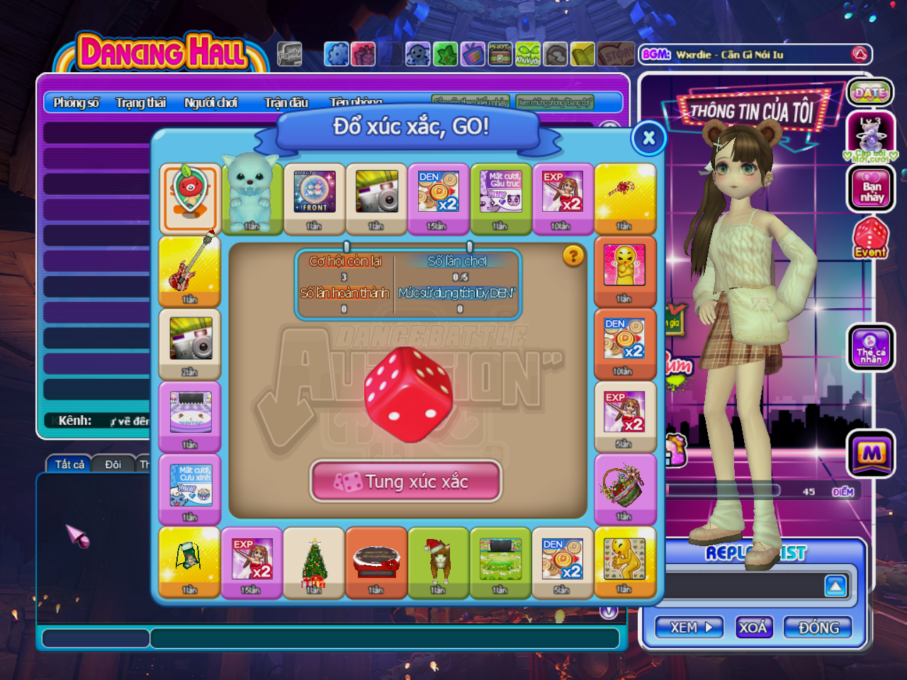 Kiểm tra số lượng xúc xắc và tiến độ nhiệm vụ ở trên bàn cờ