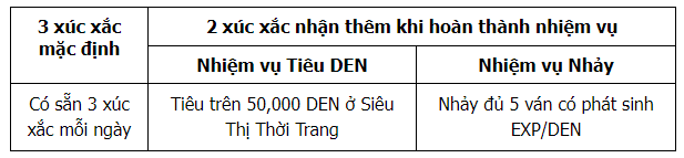 Tích luỹ DEN và số ván nhảy trong ngày cũng sẽ được reset