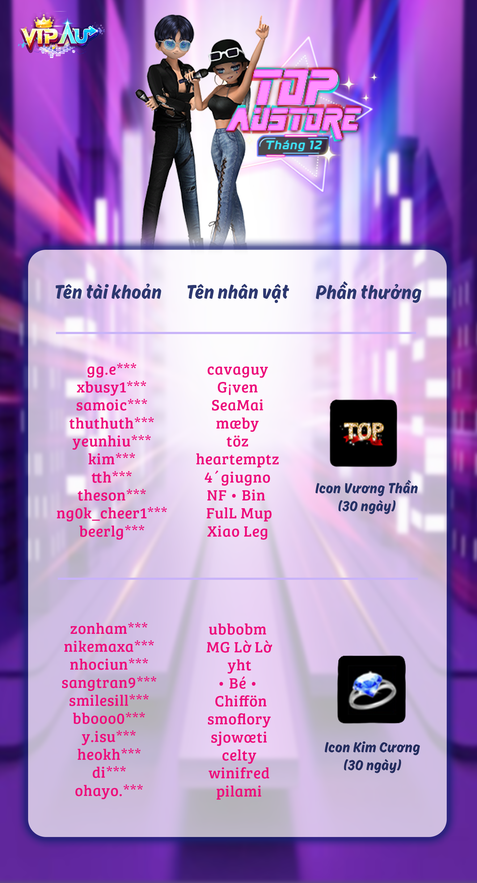 Cùng xem danh sách Top AUSTORE Tháng 12 có những gương mặt nào nhé!